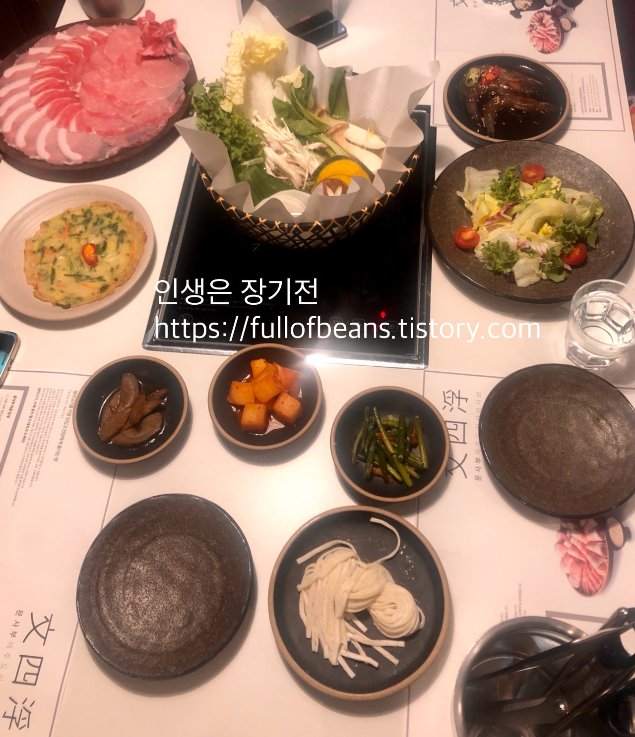 저녁이 되서 태풍 링링이 한국을 떠나 북한 쪽으로 이동한 후 - 송도에 있는 지인 집으로 이동을 했다. 약국 근무를 마치고 온 J언니는 - 언니 대신 언니 친구 결혼식에 참석하러 태풍을 뚫고 대전까지 다녀온 형부와 원률이를 차에 태우고, 나를 송도까지 배웅해주었다. 송도에 있는 문사부라는 돼지고기 샤부샤부 맛집으로 안내해준 것은 덤~~