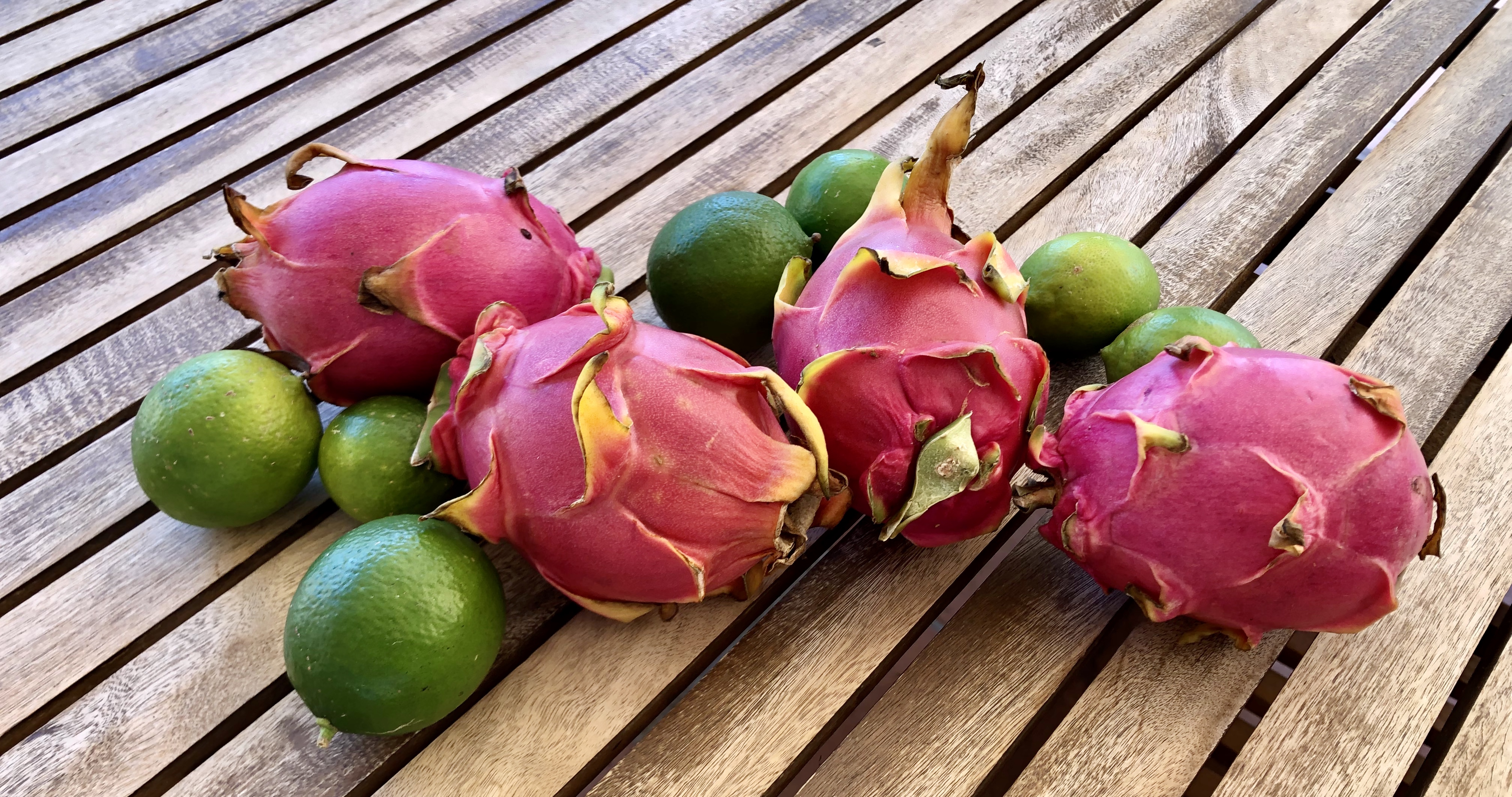 내 배우자랑 폴이 자동차에 대해 이야기를 이어가는 동안, 헬렌은 옆 집 Mr Bu 아저씨가 직접 길러서 줬다면서 용과 (Dragon fruit)을 나눠주었다. 그리고 정원 구경을 시켜주면서, 라임 (Lime) 도 잔득 건네주었다.