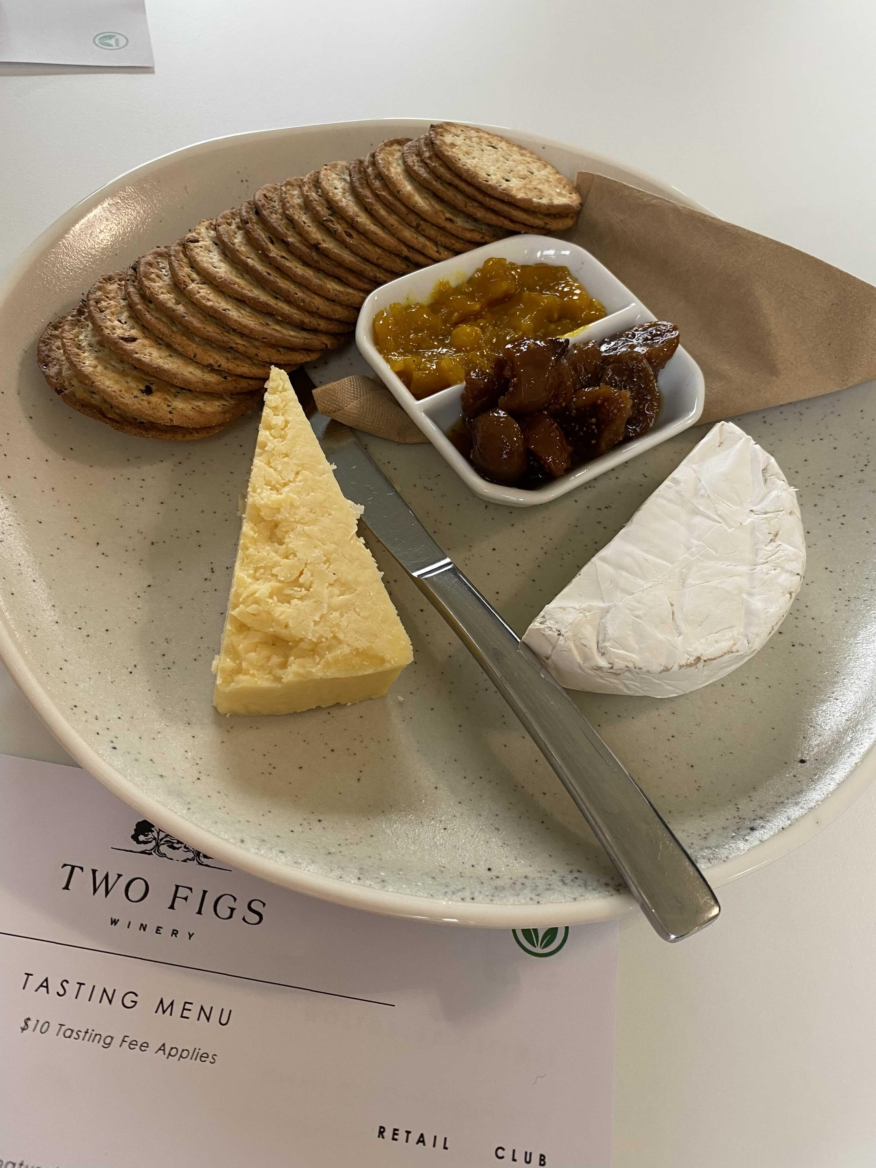 최근에 같이 여행을 갔을 때 저희 일행은 Two figs winery에서 와인 테이스팅을 했는데, 사실 요걸 가장 하고 싶어했던 사람은 저고요. S도 하고 싶었을텐데 그녀는 운전하느라 못하고, T는 원래 알코올류는 특별한게 아니면 소비하지 않기에 안하고, J가 저랑 같이 테이스팅을 했었습니다. 와인을 안마시는 T는 치즈 플라타를 주문했었고요.