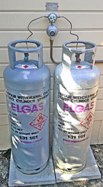 보통 호주의 하우스들을 보면 가스렌지가 있는 집들 혹은 가스로 온수를 만들거나 가스히터를 사용하는 집들은 집 바깥에 이렇게 가스통이 있습니다. 가정용은 보통 45 kg인듯합니다.