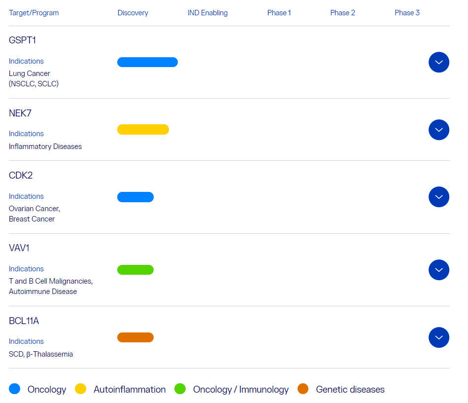 Monte Rosa Therapeutics - 최근 상장. 아직 임상에 진입한 파이프라인은 없음.
