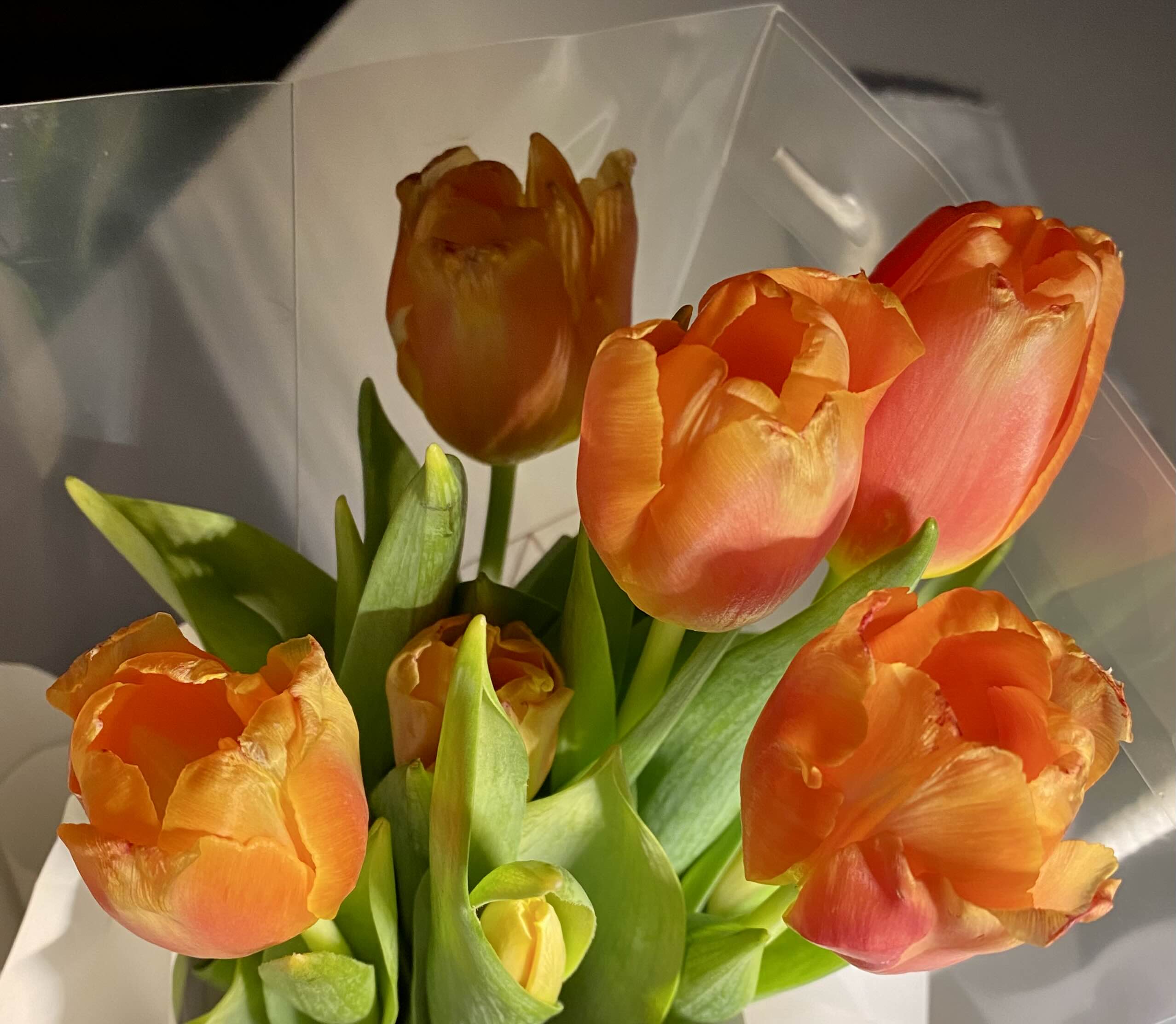 낮에 아무말도 없더니, 저녁에 요렇게 튤립을 내민다.