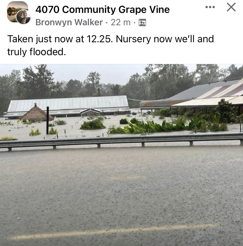 그리고 그 날 오후부터 지속된 폭우로 인해 강 수위가 급격하게 높아지기 시작했다. 우리가 집으로 돌아온지 얼마 되지 않아서 - 동네 페이스북에 이런 사진들이 날아들기 시작했다. 집에서 브리즈번 도심으로 나갈려면 (멀리멀리 우회하지 않으려면) 반드시 이 길을 지나가야하는데 - 순식간에 이렇게 물에 잠겼다.