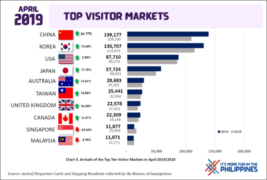 필리핀 경제에서 그 다음 중요한 것은 관광이다. 관광 및 그 파급효과는 GDP의 25%를 차지한다고하니.... 그것도 매우 놀라운 사실이다. 2018/19년 필리핀 입국자 최고 국가는 중국 다음 한국이었다고... (출처: 필리핀 관광청)