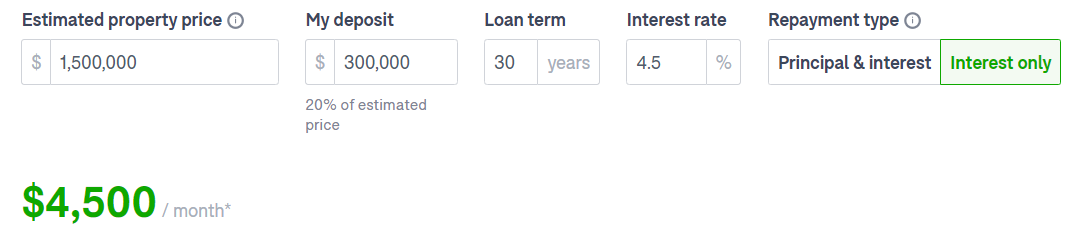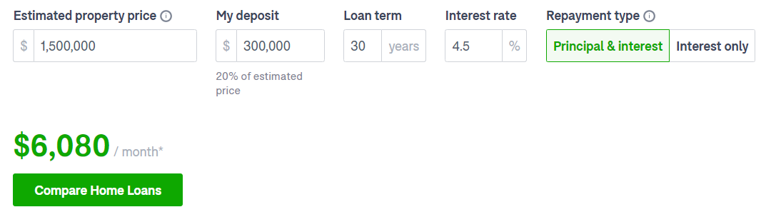 속으로 좋은 가격이라고 생각하면서 도메인에서 모기지 리페이먼트 계산을 해보니까 20% 디포짓을 낸다고 가정하고, 이율은 4.5%로 넣어보면 (요즘 고정이든 변동이든 4% 넘는) 원금 + 이자 갚을 때 한달에 내야하는 돈이 $6,080 이다. 어머나....!!