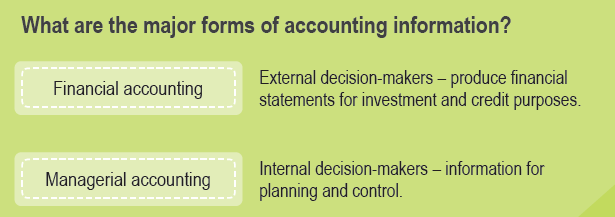 - Management accounting - 회사 내부의 관리자를 위한 용도로 계획 및 통제 목적으로 사용되며, 개별 부서의 필요에 따라 specific 해짐. 비용에 대한 재무정보와 예쌍되는 수익을 보여줌으로써 관리자가 이윤이 극대화되는 결정을 할 수 있도록 하는 역할.