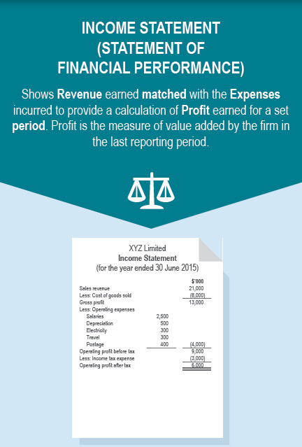 Primary measure of a company's performance = profit (=revenue - expenses) for the period