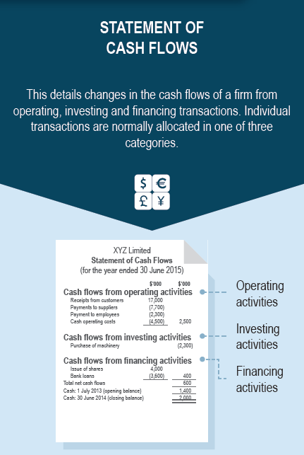 Statement of Cashflow - the change in the firm's cash position -- cash accounting