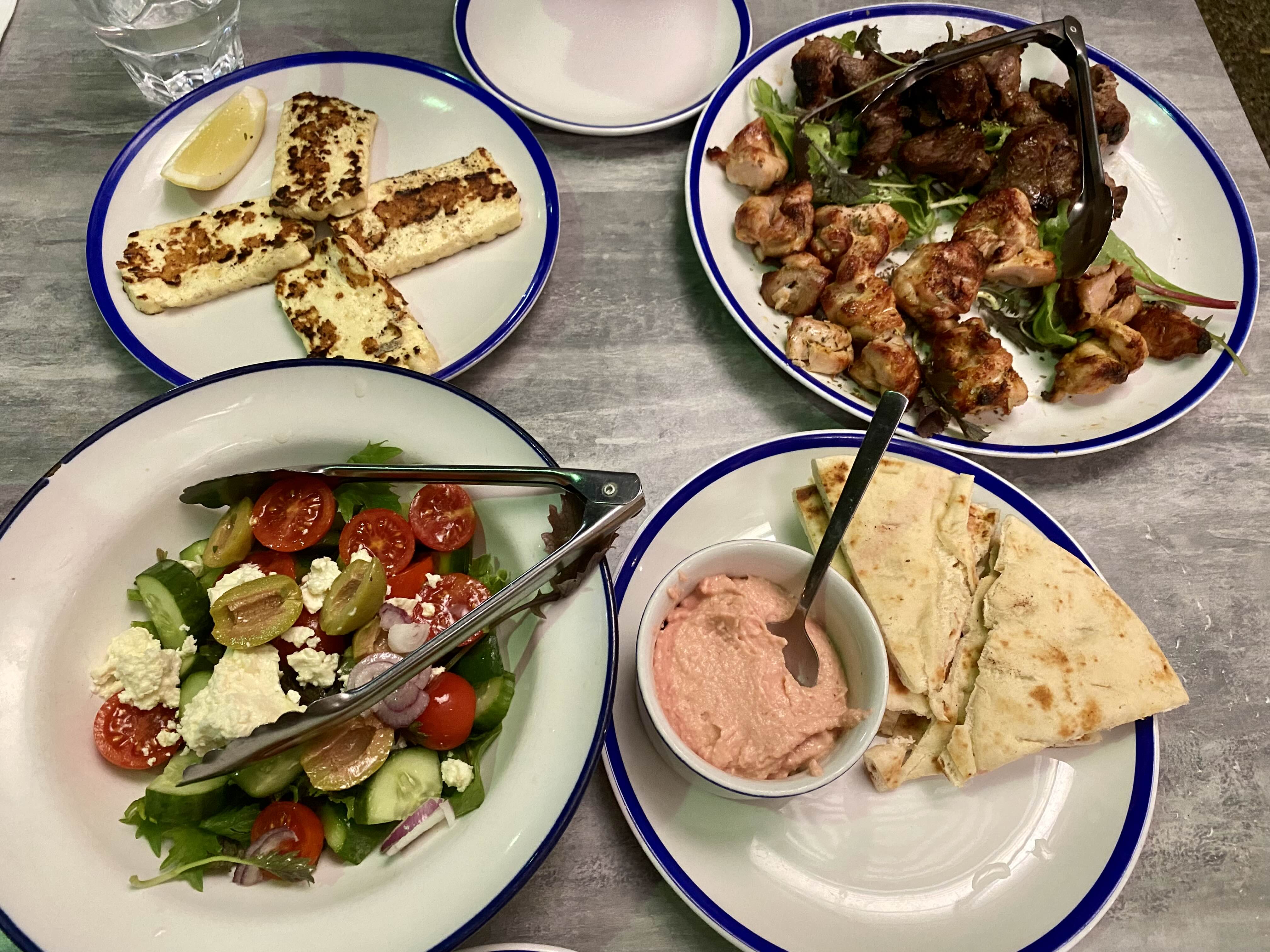 그릭 레스토랑 Icarus 에서 저녁은 거의 처음(?)인듯한데 요즘 수블라키 같은 그릭 바베큐에 꽂혀서 그런지 맛있다.