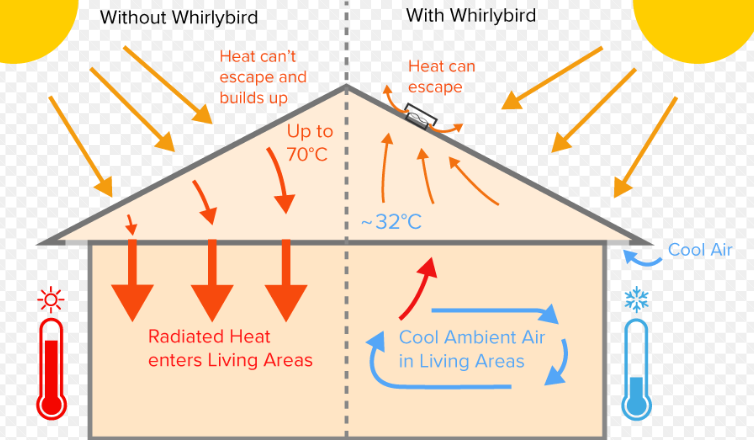이건 집 내부의 천장~지붕 아래에 있는 뜨거운 공기를 배출해주는 환기구로 whirlybird 윌리버드 라고 부릅니다.