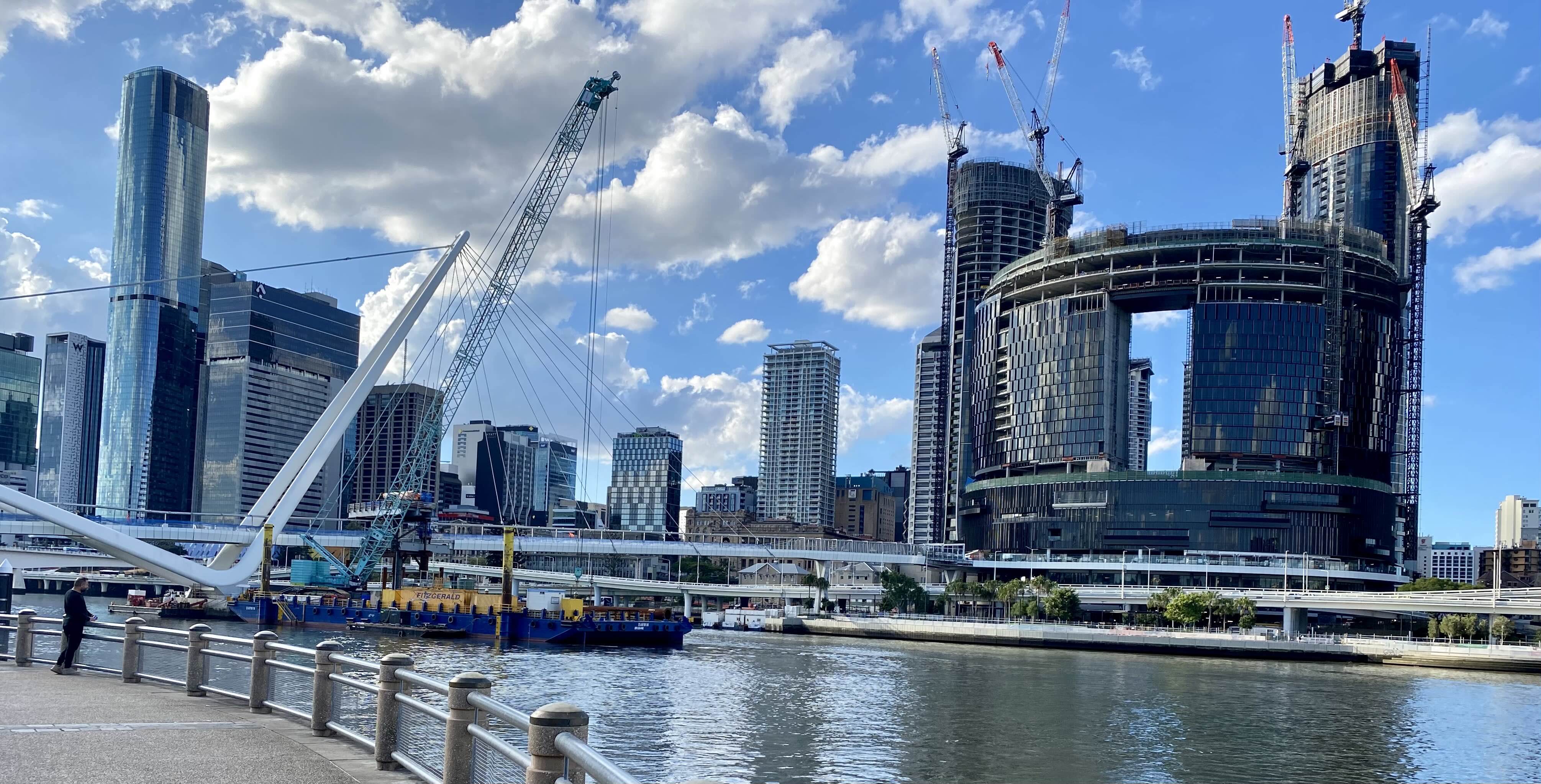 아무튼 이 건물이 완성되면 브리즈번 스카이라인이 확 바뀌겠네요. 강 바로 앞에 높은 고층 건물 짓는 조건으로 시행사(?)에서 저기 보행자 전용 자리 놓는 중이라고 합니다… 언제 다리가 완성될라나 했는데 생각보다 시간이 금방 가네요…