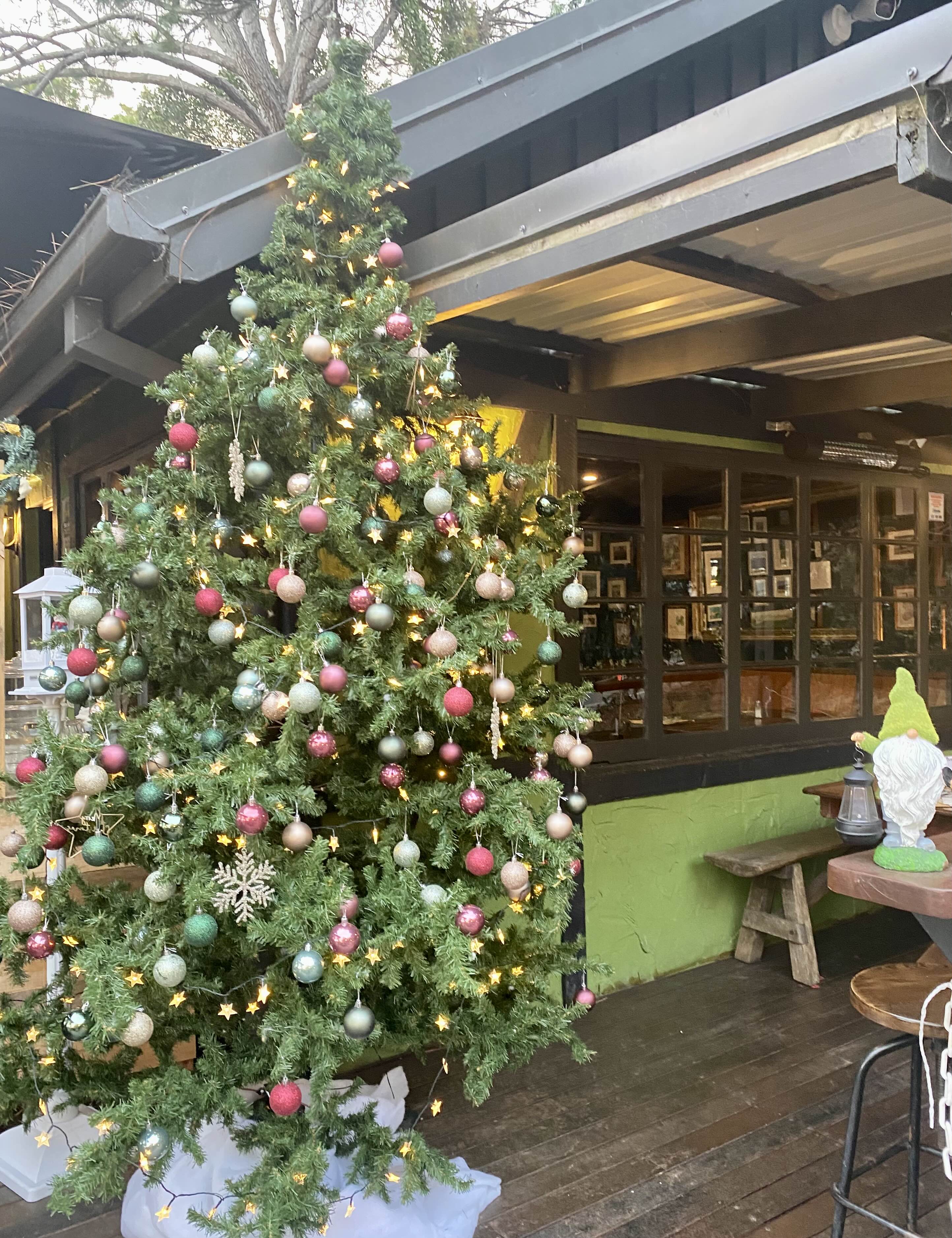 간단한 산책을 했으니 탬보린 마운틴 주민들이 주로 간다는 - 토요일이라 전좌석 저녁 예약이 끝난 - 크리스마스 in July 데코가 되어있는 인근 펍에 가서 맥주 한잔씩 하고….