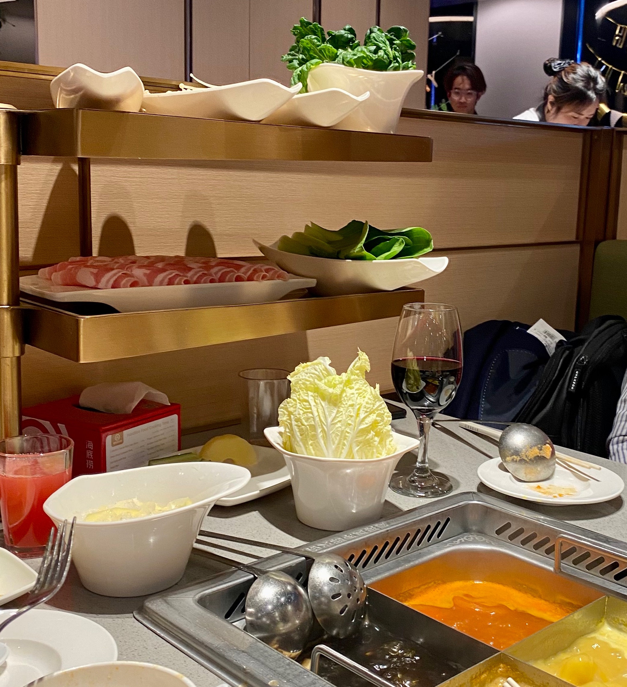 하이딜라오는 태블릿으로 주문을 하면 서빙 로봇이 돌아다니며 음식을 가져다 준다. 직원들 매우 친절하고 - 음식도 맛있고 - 분위기도 전반적으로 괜찮다.