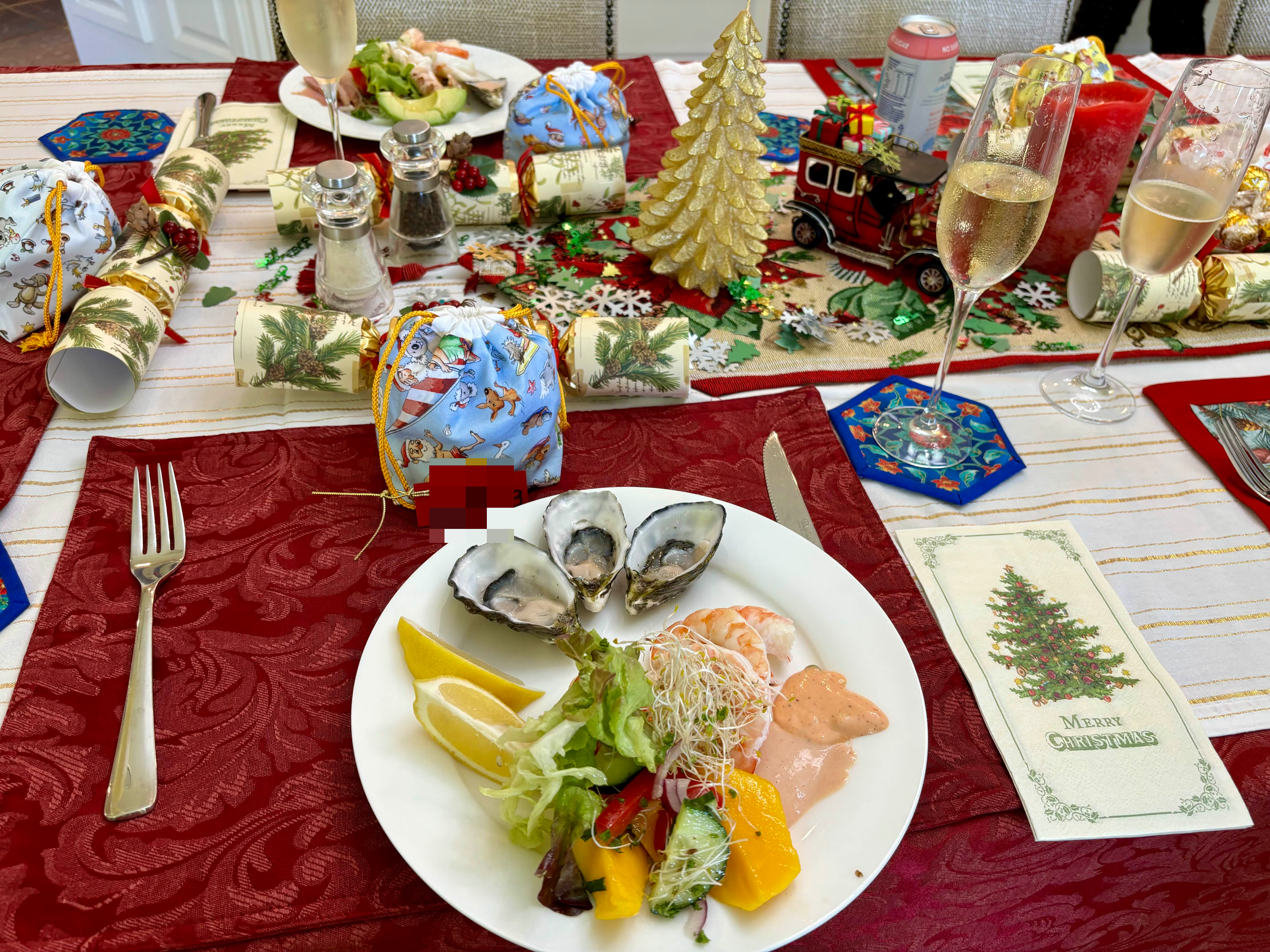 예년에 비해 훨씬 우아해보이는 테이블 셋팅.... 예년에 비하면 인원이 대폭 줄었고, 이번 해에는 주방이랑 다이닝 공간이랑 같이 있고, 천장이 높은데다, 자연광이 가득 들어오기에 그렇게 느껴지는 것인지도...