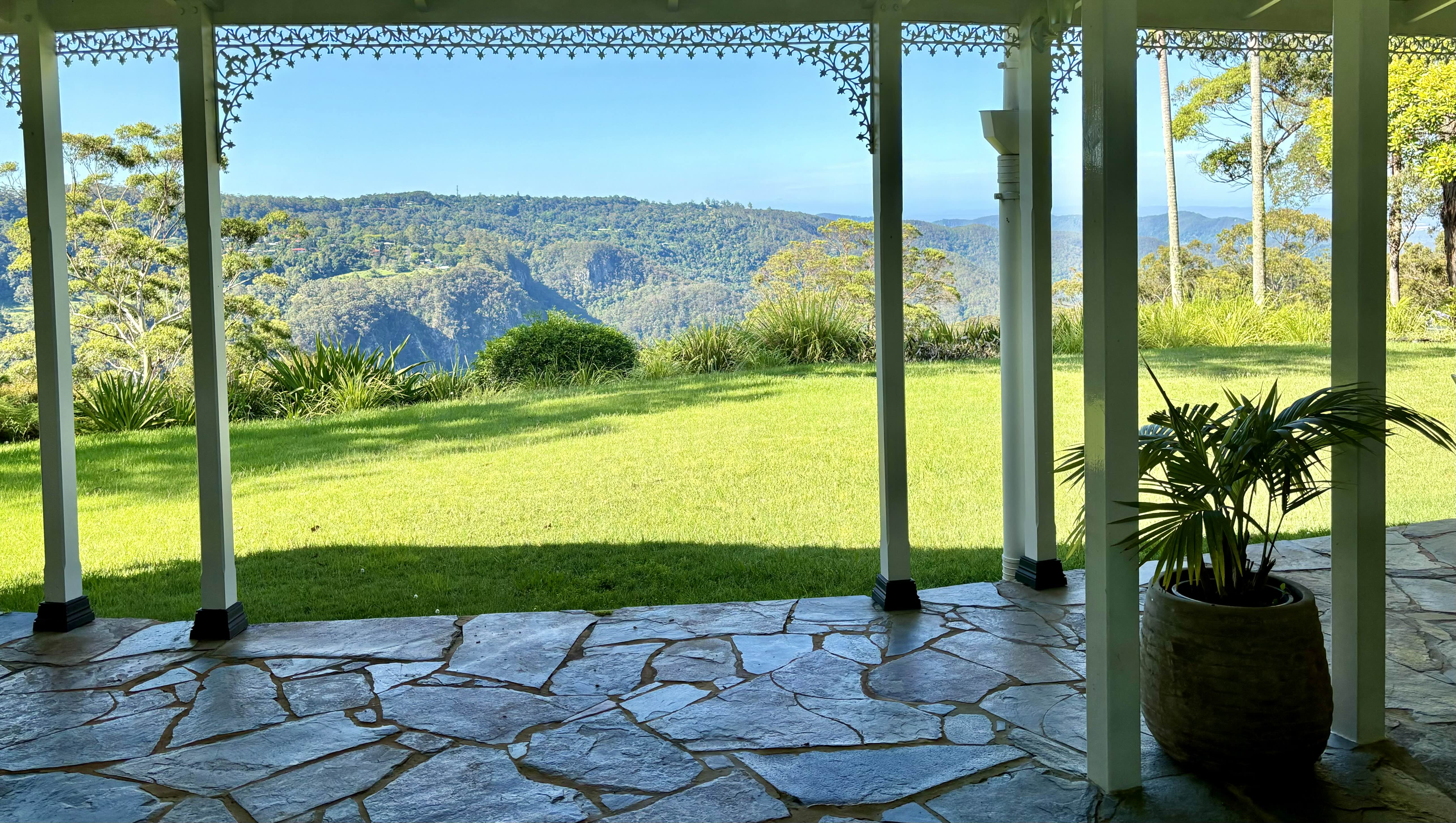 이번 해에는 호주 전역에 크리스마스 날 비가 올꺼라는 기상예보가 있었고, 우리도 가는 길에 폭풍우가 몰아치면 어쩌나 걱정했는데 - 폭풍우가 무슨 말이냐는듯 - 햇빛이 쨍쨍했다. J&J네 집에 도착하니 엄청난 파노라믹 뷰가 펼쳐진다.