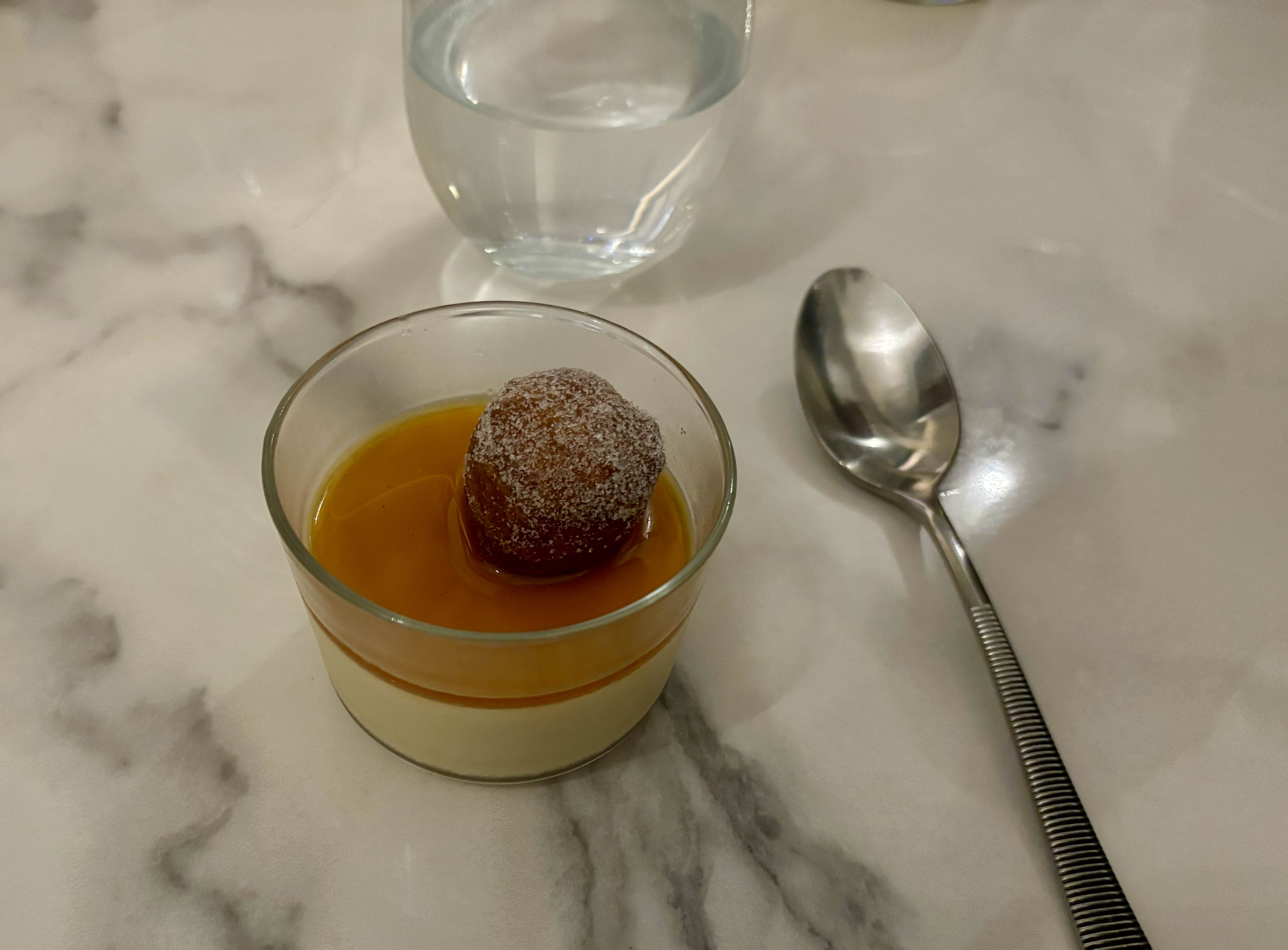 디저트로는 캬라멜 소스 얹은 우유푸딩+중국식 도넛