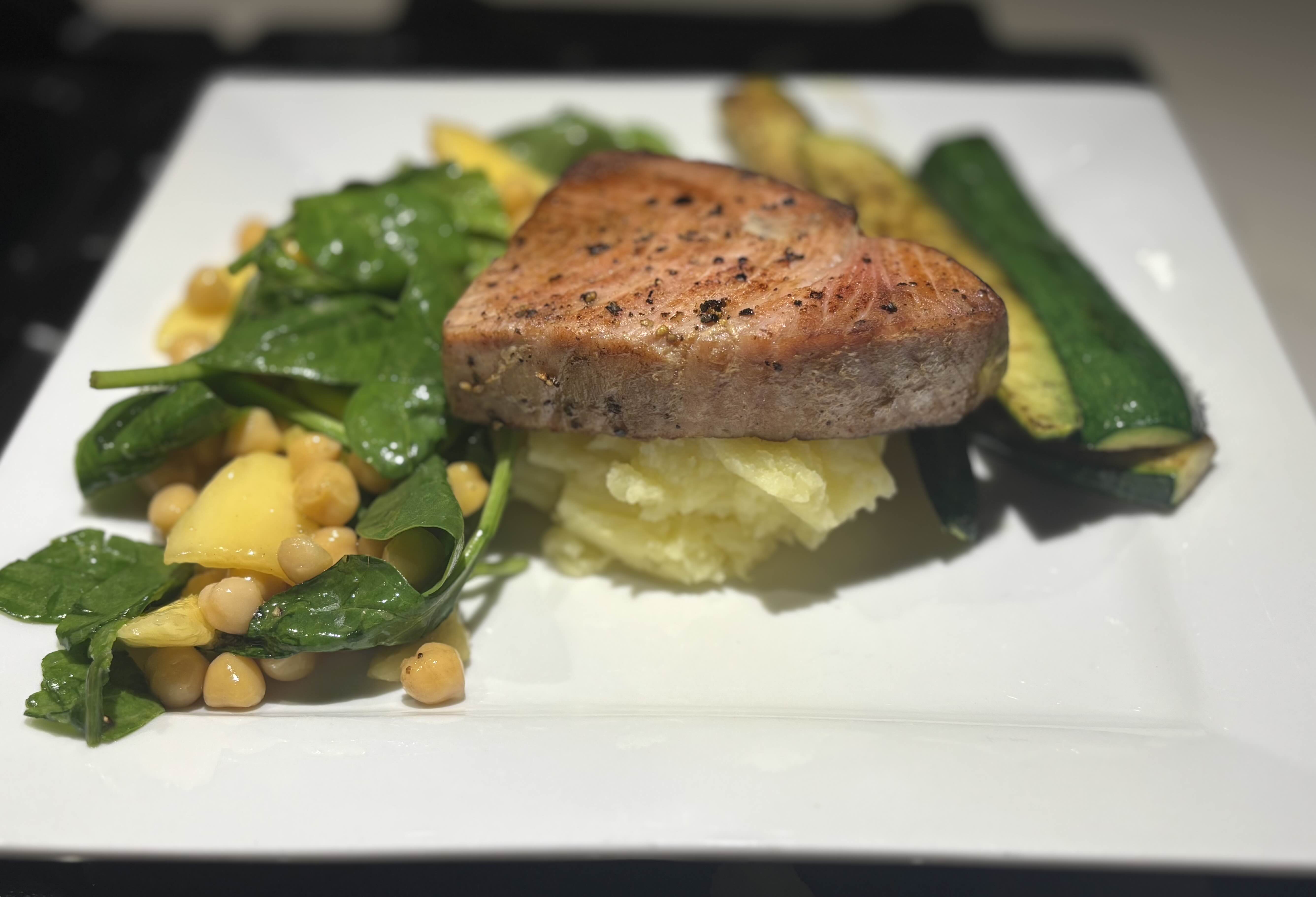 <<Tuna Steak + Mango & Spinach Salad + Mashed Potato>