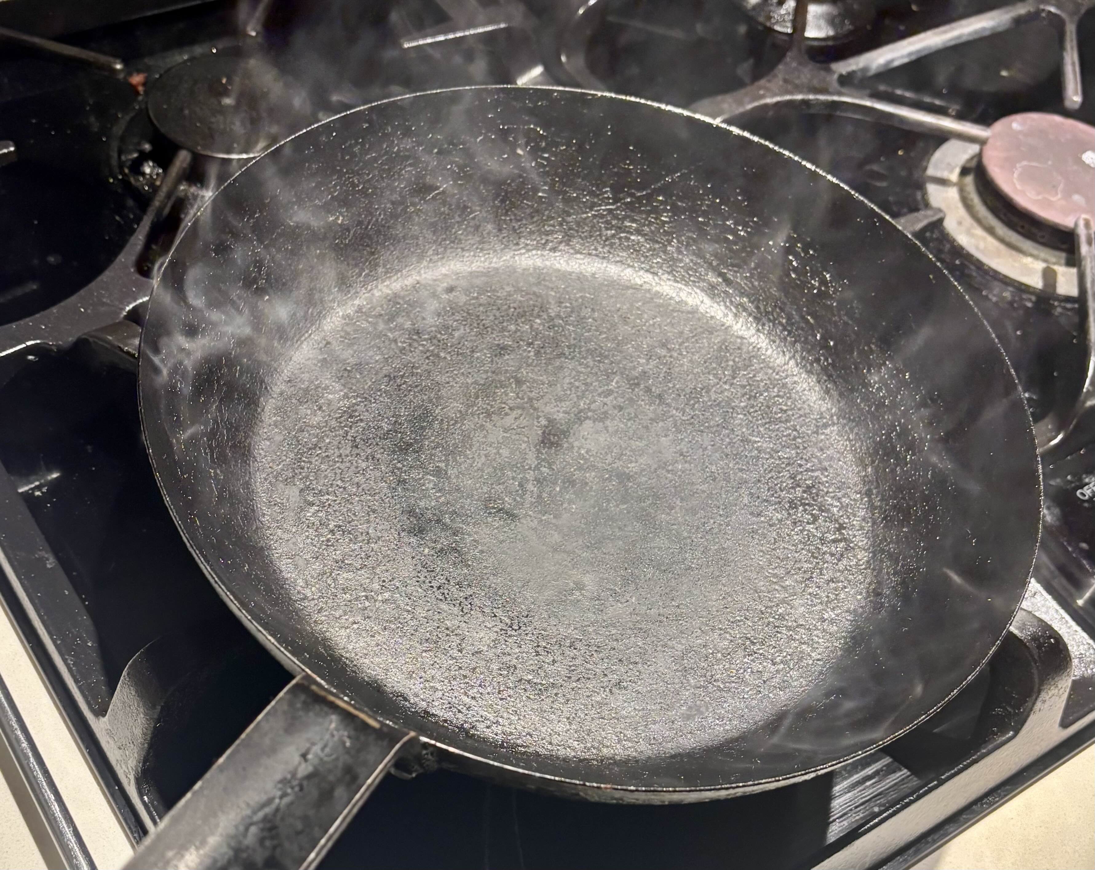 2. 무쇠 후라이팬 (non-stick 안됨)을 연기가 이글이글 일도록 엄청 뜨겁게 달궈서