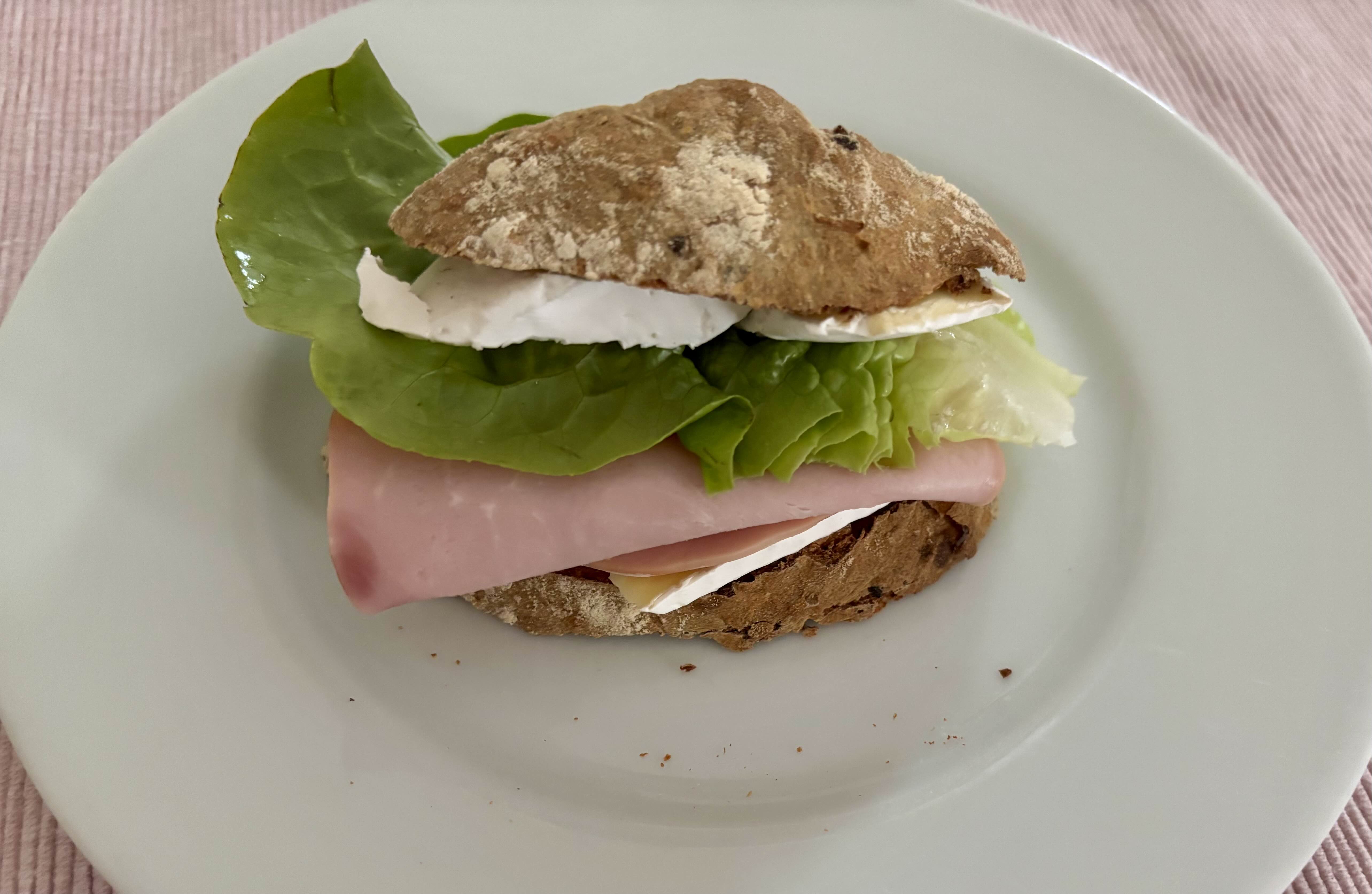 마침 점심 시간을 지나고 있어서 점심으로 갓구운 사워도우에 브리치즈랑 햄 그리고 상추잎을 넣고 샌드위치를 만들어봤다.