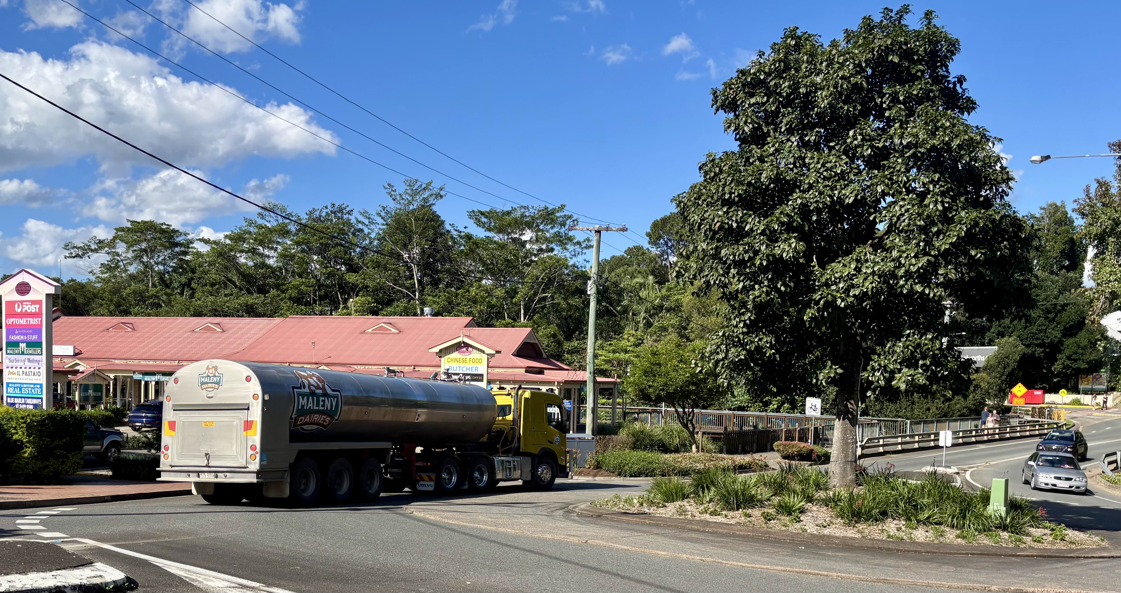 마침 퀸즐랜드의 대표 우유브랜드인 말레니 유제품 로고가 찍힌 우유 트럭이 지니가길래 찰칵!