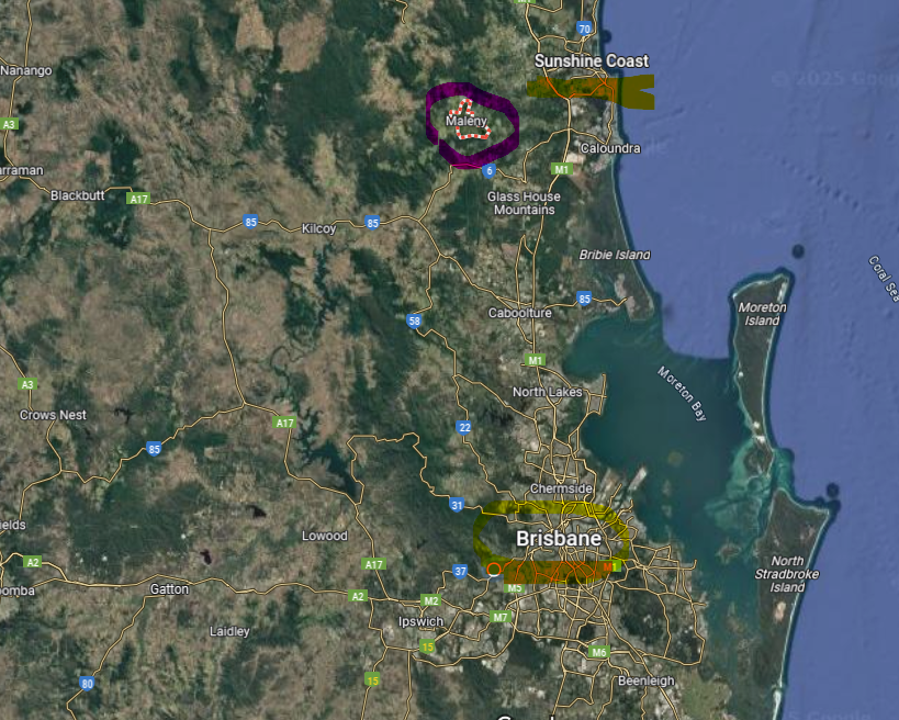 브리즈번에서 북쪽으로 대충 100 km - 약 1시간 30분 북쪽에 있는 말레니 Maleny
