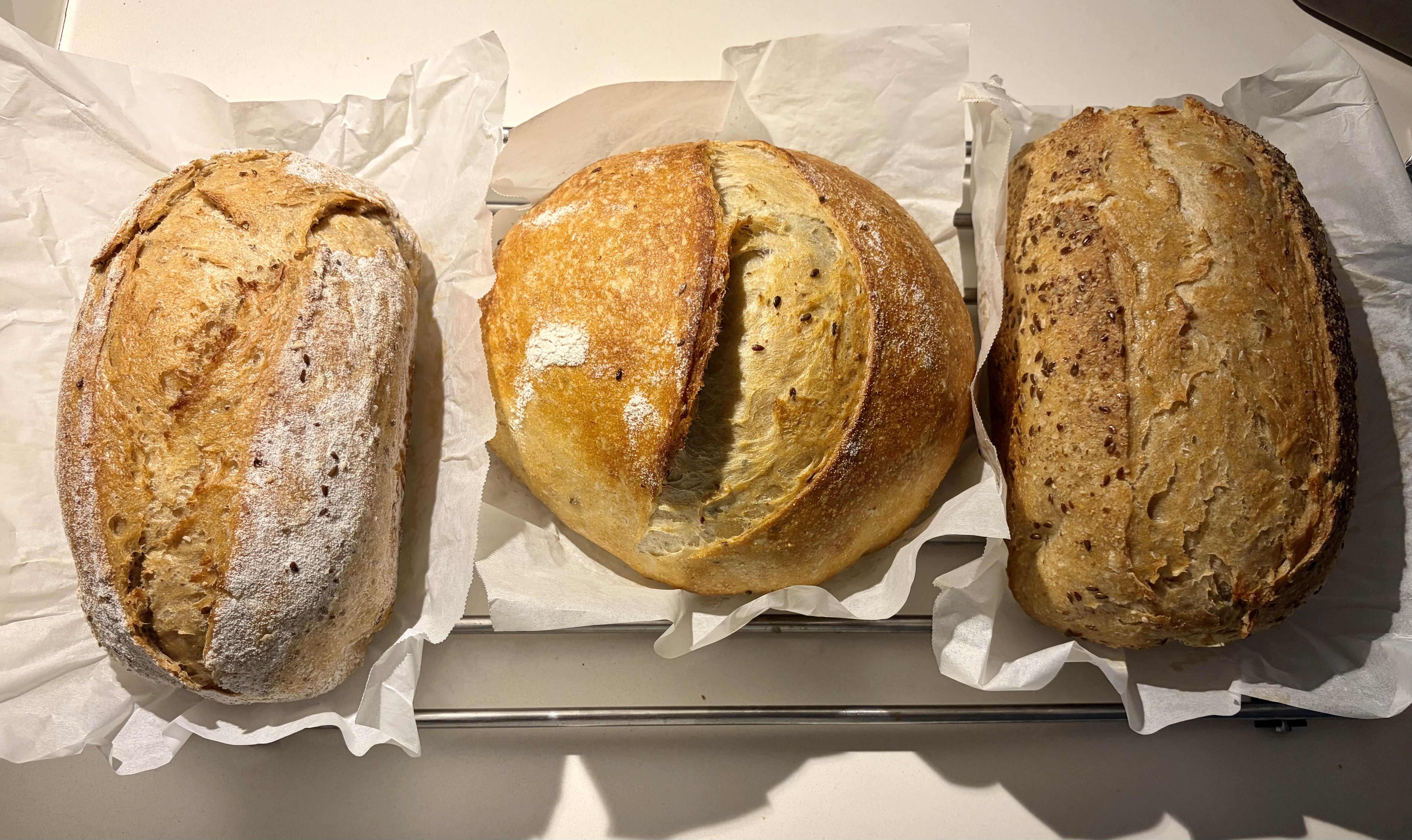 통밀 50%로 된 것 2개랑 (50% Whole wheat)이랑, 보통 밀가루로 만든 것 (100% Bakers flour) 1개 = 총 3개를 구웠다.